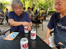 バスに乗ると見覚えのある人たちが・・・・昨夜のディナークルーズで向かいの席だった団体さん!