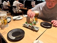 日本食屋さんで、たこ焼きとサッポロ生