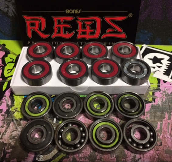 スケートボードにはサスペンションのような役割をしている物が、小さいゴムのクッションしかついていないので、ジャンプなどの技をしているとほぼ直に衝撃がベアリングに伝わるので使っていくうちにベアリングがやられてきて砕けたりとかします。
