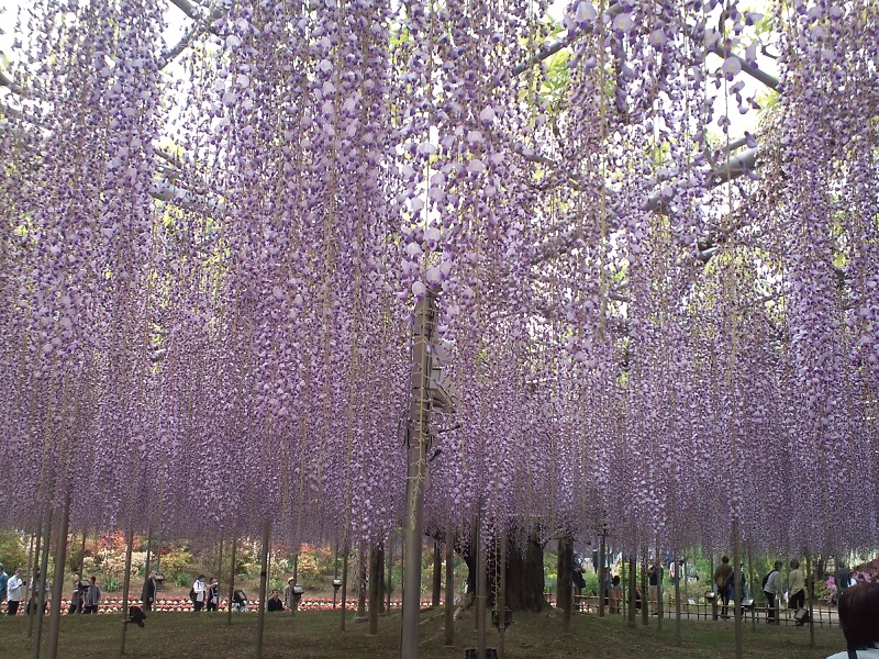 私はこの季節、毎年、足利フラワーパークに足を運んでいます。いろいろな花がきれいに整理された庭園の中で咲き誇っていて、何度訪れても目を奪われてしまいます。中でも栃木県の天然記念物に指定されている「大藤」は見る者を圧倒する姿です。「大藤」の見頃はちょうどゴールデンウィークの真っ最中で駐車場に車を止めるのも一苦労、さらに園内は人だらけですが、一見の価値は十分あると思います。足利フラワーパークに行かれたことのある方も大勢おられると思いますが、行かれたことの無い方には絶対おすすめできます。私は今年も行くつもりですが、どんな景観を見せてくれるか今から楽しみにしています。