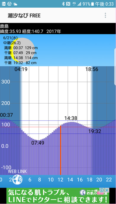 日没18:56-日出04:19=昼間14:37