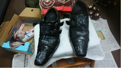 これは次女が我が家で小遣い稼ぎのために開業中の靴磨き屋(1回200円)です。