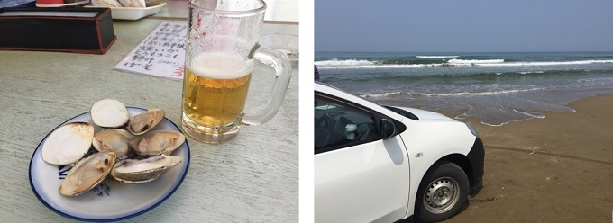浜辺には、海の家もありそこで一杯。天気も良く最高~(ドライバーさんすいません!)