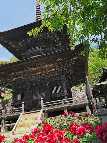 ここの見所はなんといっても四季の花々です。春の桜、初夏の紫陽花をはじめ、どの季節に訪れてもその時期ならではの景観を楽しむことができます。四月下旬のこの日、桜は既に葉桜でしたが、牡丹、藤、石楠花などが見頃を迎え、山の新緑と相まってとても華やかな雰囲気に満ちていました。