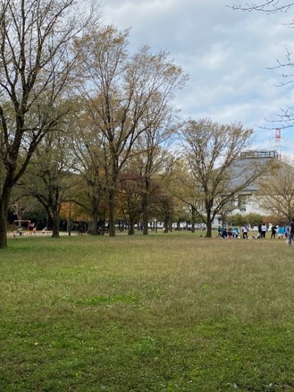 よく見るとてっぺんまでは結構高いです。広場もすっかり秋ですね。