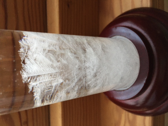 部屋の中では霜柱にも似た結晶で、ストームグラスが賑やかにお天気を示してくれている。