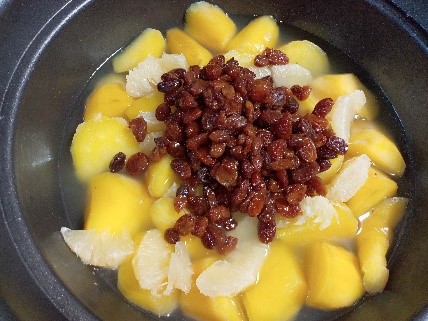 煮ている間にレモンの皮むきをしてラムレーズンを用意。