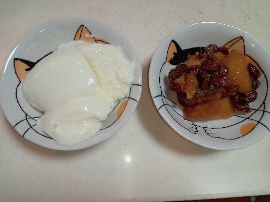 今回はさつまいもを使ったレモン煮とスキムミルクヨーグルトを作ってみました。