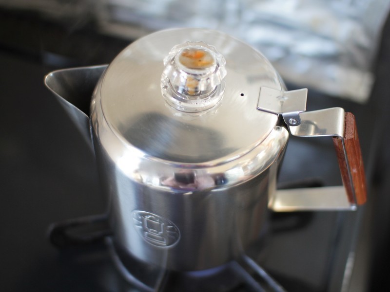 沸騰したお湯がコポコポ・カタカタと心地よい音を立てながら、パーコレーター内を循環するのを