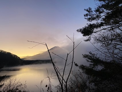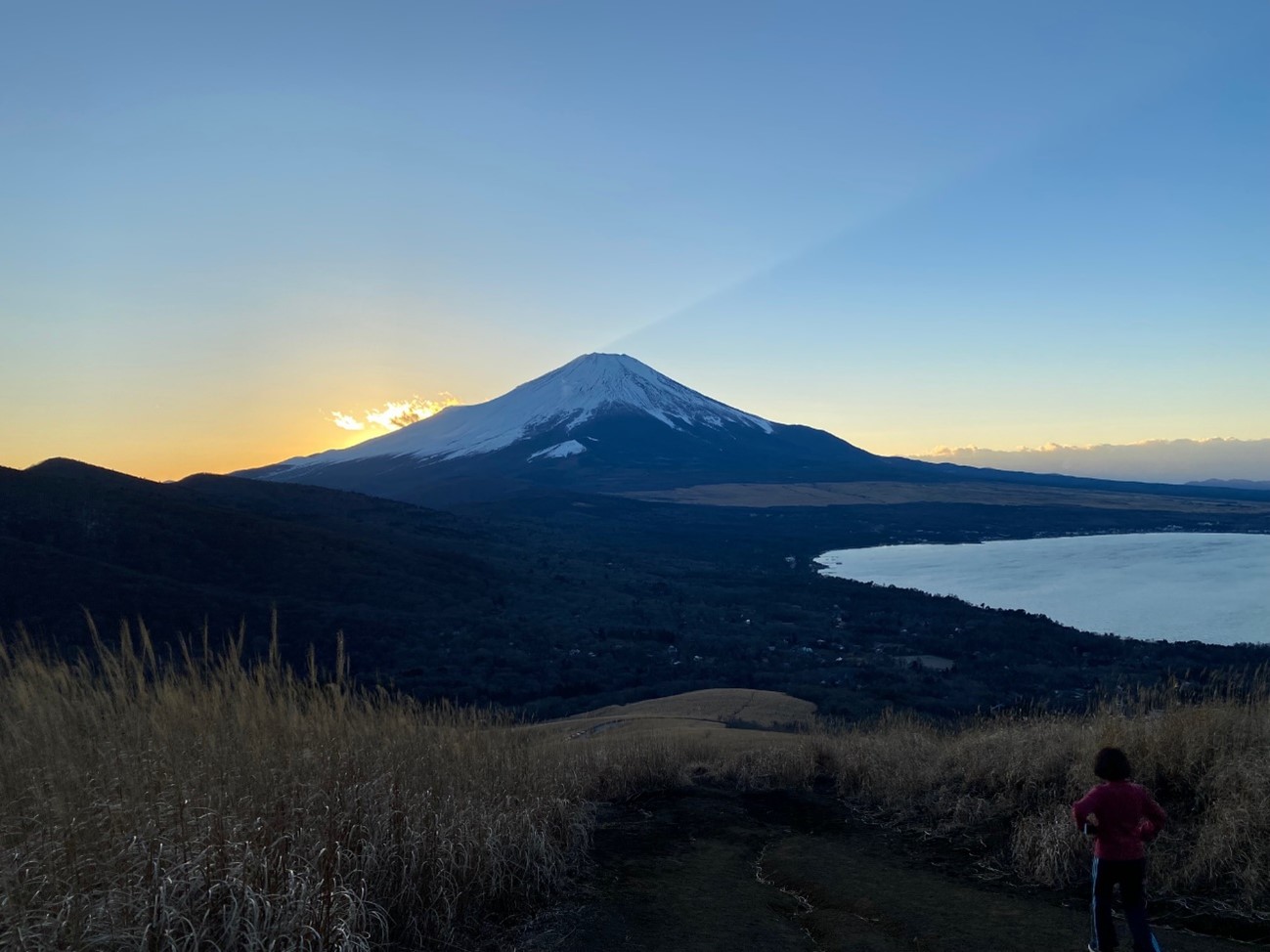 除夜の鐘と同時に山梨県の本栖湖へ初日の出を見に出発し、5時過ぎに現地到着