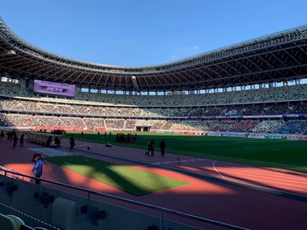 いつもJリーグを観戦する鹿島サッカースタジアムと違いピッチまで距離が有るので、最前列で観戦