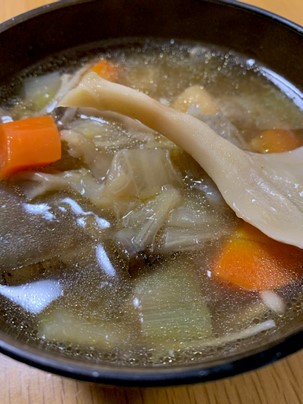 帰って早速いただいた野菜を使って具沢山のお汁を作りました。
