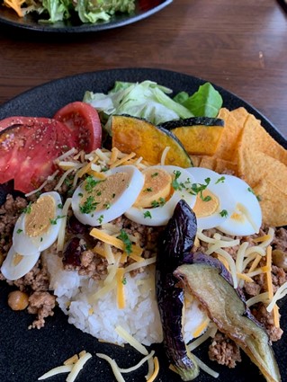 タコライスはお野菜もたっぷりお洒落なカフェは食事量もお洒落だったりするのですがボーリュームもありトル