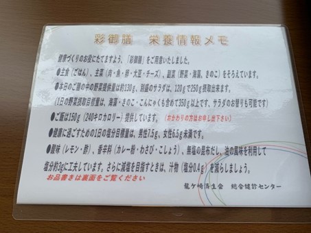 一緒に添えられていた栄養情報メモの後ろにはお品書きが