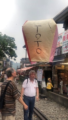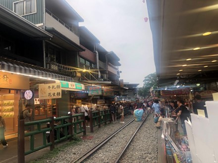 線路の左右にお土産屋さんやランタン屋さんなどが軒を連ねる十分老街と言う場所があります。