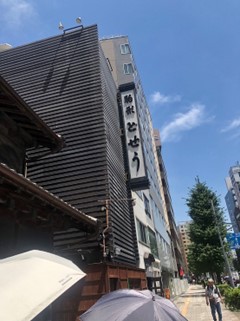 都営浅草線 浅草駅を出ると100mほど先に「駒形どぜう」の看板