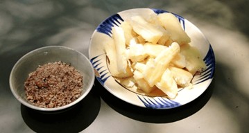 タピオカの原料でおなじみのキャッサバ芋ですが、当時は主食として蒸かして食べてたとの事